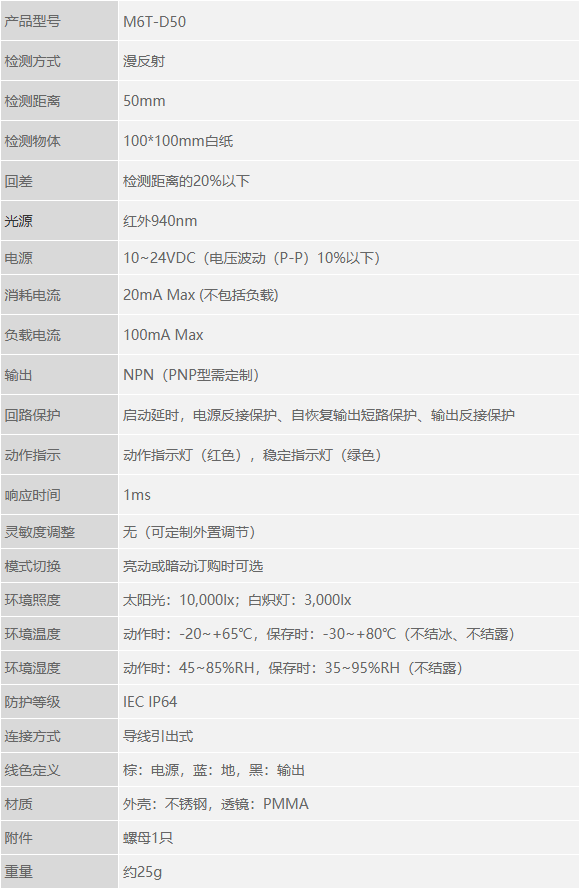 | 線色定義 | 棕:電源,藍:地,黑:輸出 |